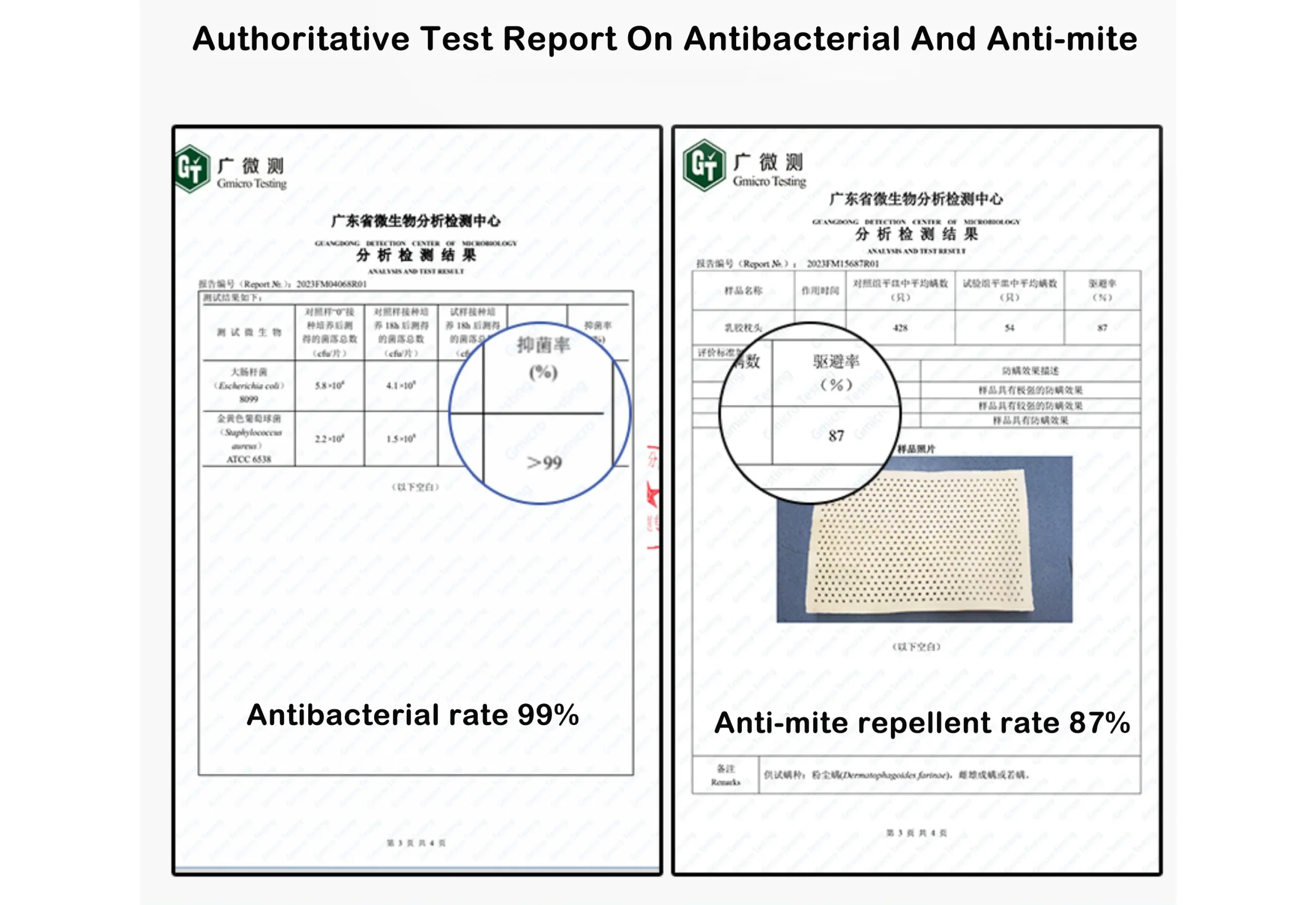 • Antibacterial & Anti-Mite Protection, high-density knitted fabric + natural latex work together