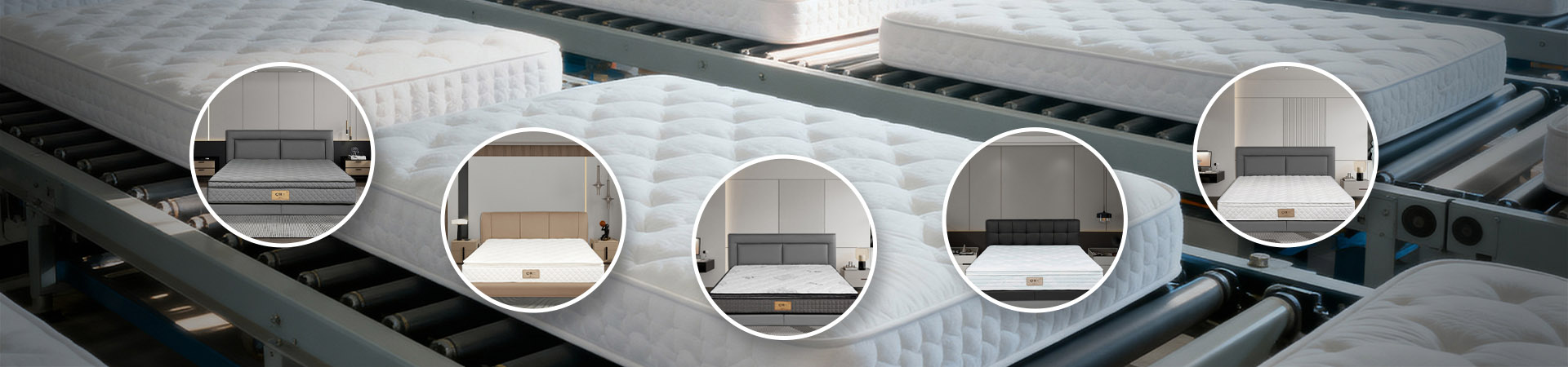 We manufacture a full range of mattresses including foam mattresses, pocket spring mattresses, hybrid mattresses, hotel mattresses, and customized designs based on client needs.
